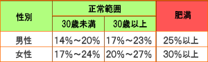 適切な体脂肪率は以下通りです。
